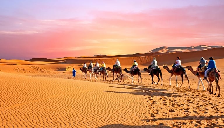 Join us for an unforgettable holiday in the Sahara Desert with camel trekking, Berber music, traditional Moroccan feasts, and a magical New Year’s Eve celebration under the stars.